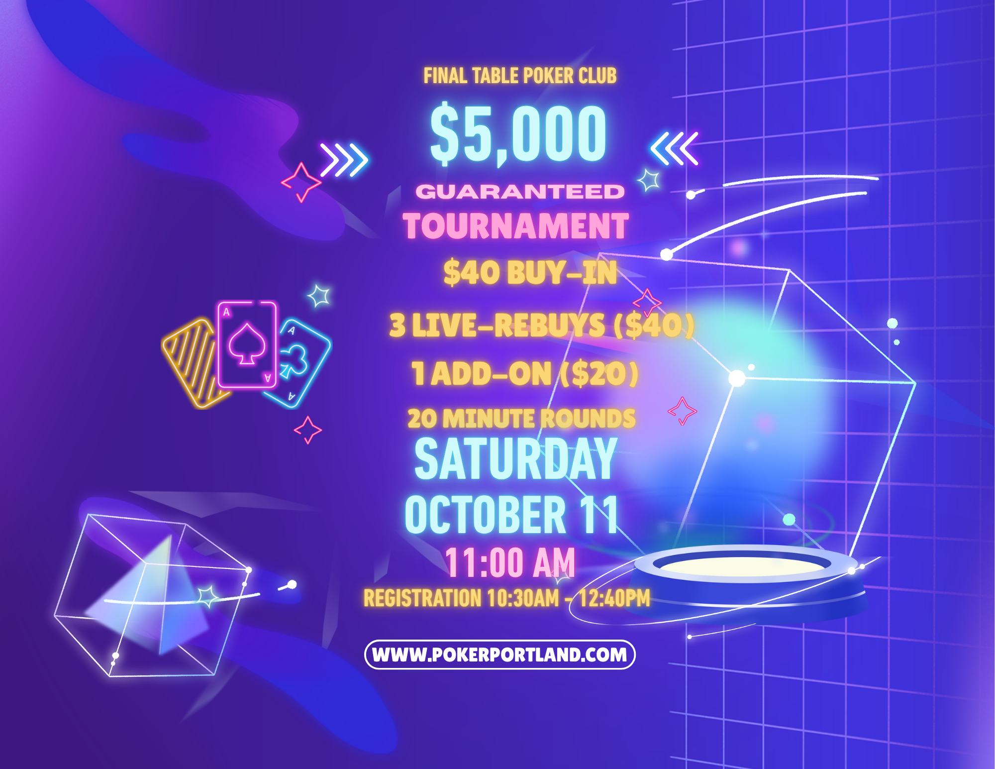 Portland’s #1 destination for Rake-Free poker, great food, and drinks—delivered right to your table.
